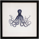This navy ink whale art is framed under glass with a black wooden frame. This piece would sit nicely in any Coastal home.