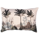 Grey and natural stripe cushion is made from cotton and has a feather insert inside.